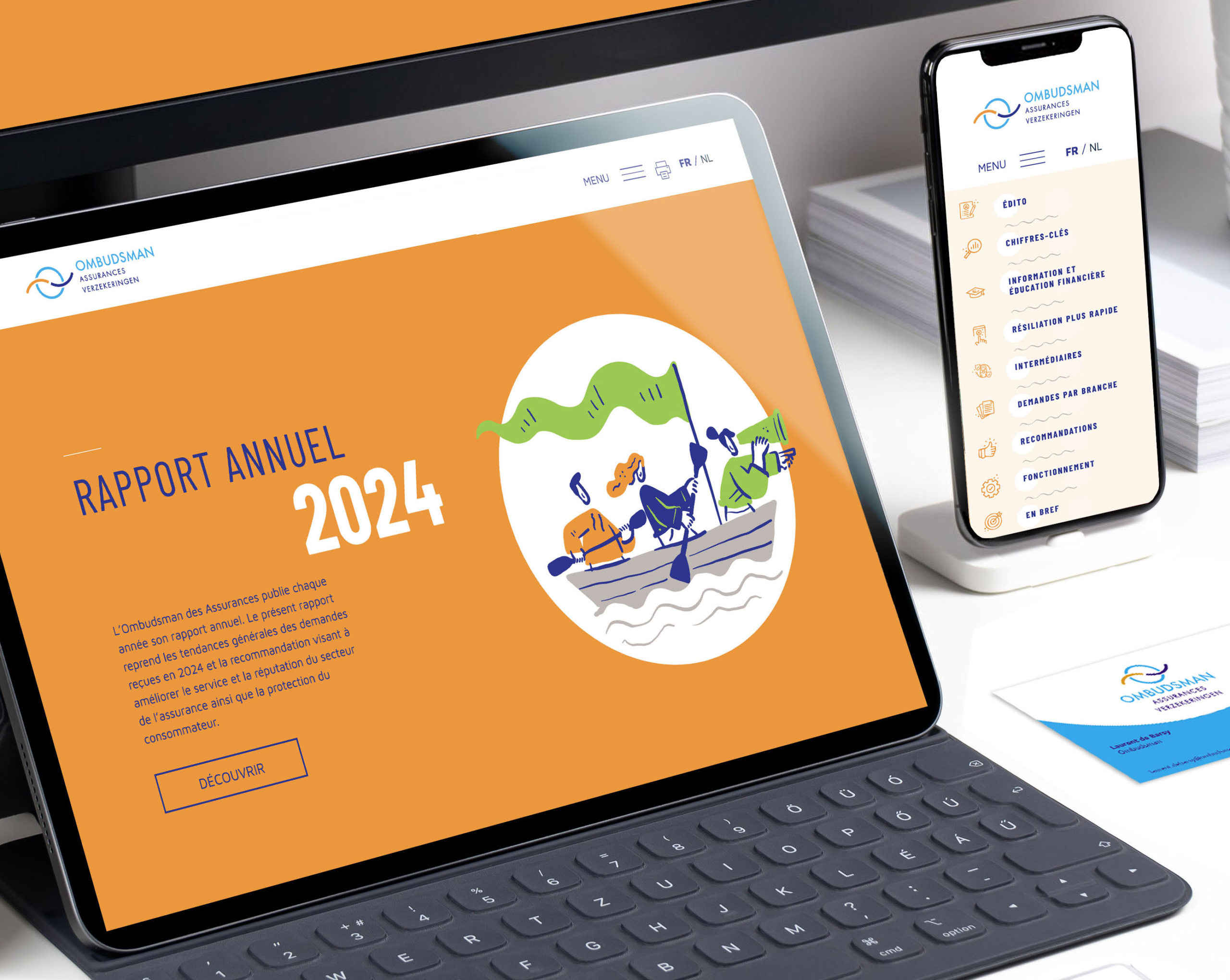 Dans la foulée du rebranding de l’Ombudsman des Assurances, voici quatre années consécutives que nous développons le minisite du rapport annuel de ce service de médiation. Une maquette claire et sobre mêlant textes, infographies, pictogrammes et illustrations convenant parfaitement pour agrémenter la consultation du rapport et humaniser ce service à la population.